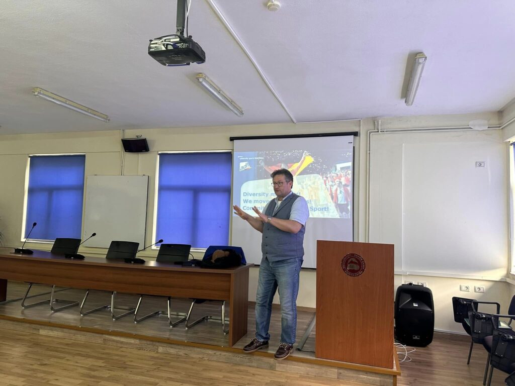 Së bashku me Presidentin e FSHSU, Z. Besnik Veliu, u zhvillua një sesion diskutimi me studentët. Referimi i kushtoi rëndësi të veçantë rolit që sporti universitar luan në jetën e studentëve, duke adresuar sfidat dhe mundësitë që ofron për të rinjtë, rëndësinë e angazhimit të studentëve në organizimin e eventeve sportive dhe ndikimin pozitiv që ata mund të kenë në komunitetin e tyre.